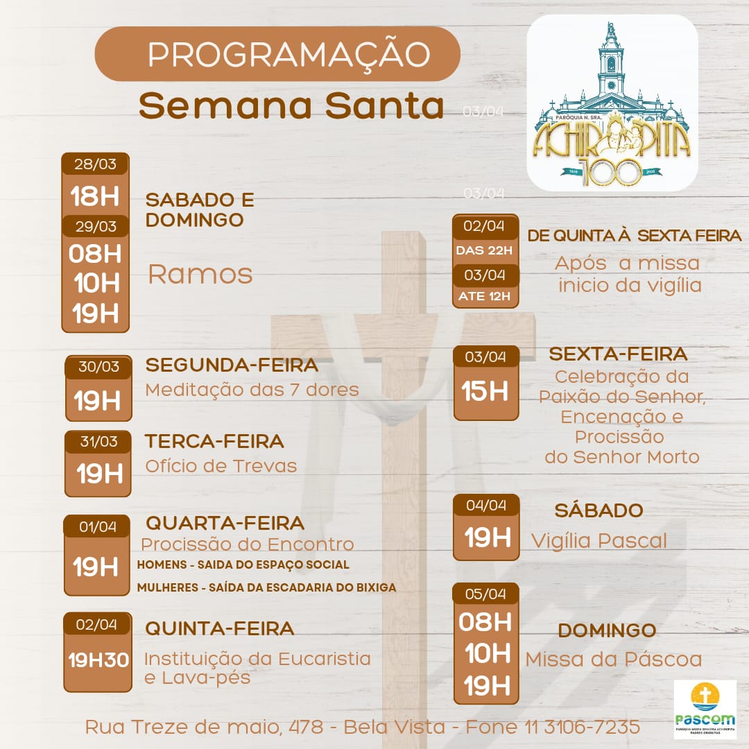 Missa: 8h, 10h e 19h.